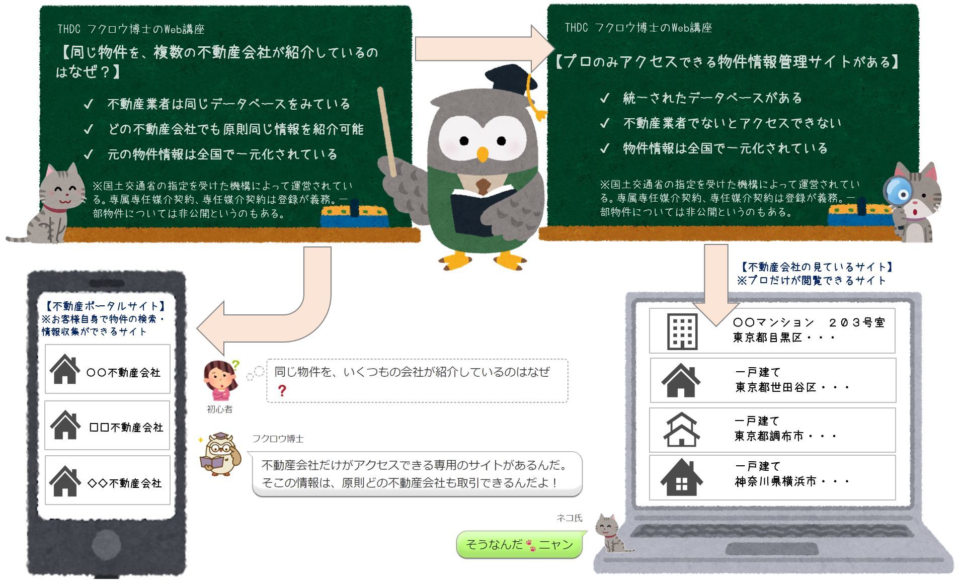 不動産会社は、プロのみがアクセスできる、全国の物件情報が一元化されたサイトから、情報を取得し、お客さまにご紹介しています。